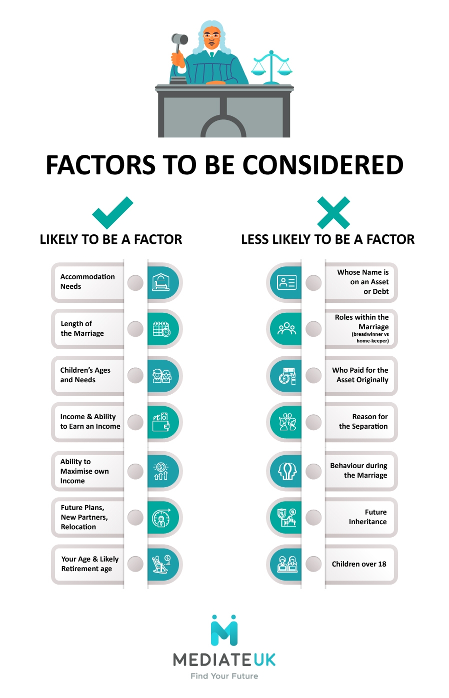 Don’t forget to revisit the ‘Ultimate Guide to a Financial Settlement’ which goes in depth into these factors.